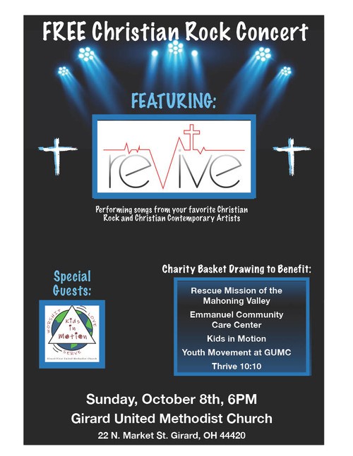 Join us at 11 am as Revive works in tandem with the choir to create Girard First UMC's original blended service bringing forward elements of traditional and contemporary worship.